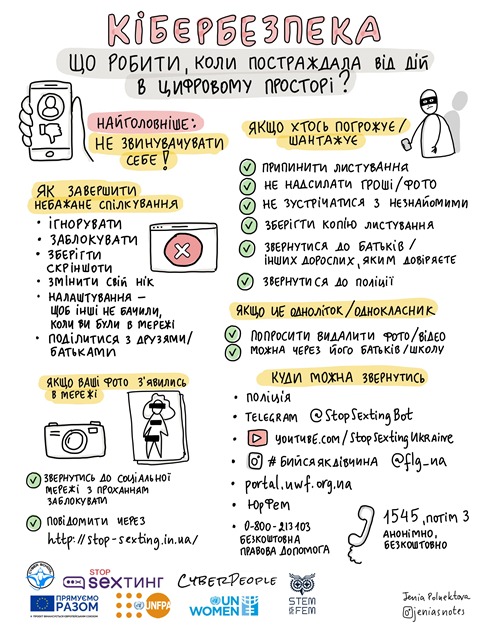 - онлайн-грумінг – побудова в мережі інтернет дорослим або групою дорослих осіб довірливих стосунків із дитиною (підлітком) із метою отримання її інтимних фото/відео та подальшим її шантажуванням про розповсюдження цих фото, наприклад для отримання грошей, більш інтимних зображень чи навіть примушування до особистих зустрічей.